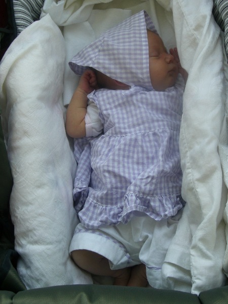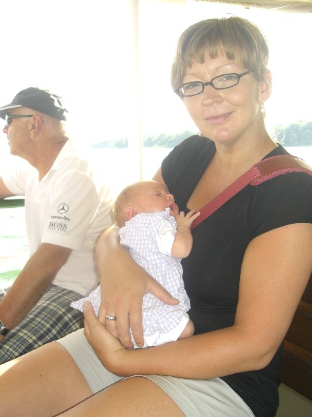 Mit drei Wochen unternahm Sara dann ihren ersten Ausflug: zusammen mit Oma Waltraud und Opa Walter am Chiemsee. Aber auch den verschläft sie.