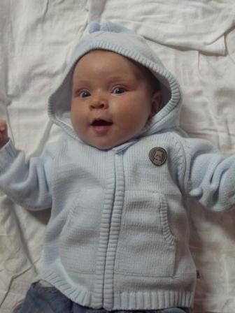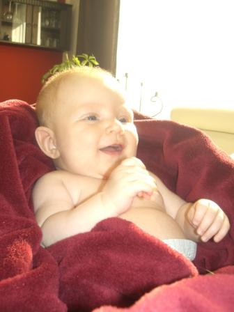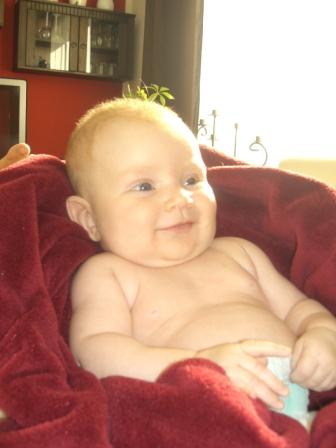 Irgendjemand hat mal behauptet, von Muttermilch würden die Babys nicht dick werden....na ja, dann habe ich wohl Sahne statt Milch :o). Aber wir lieben unseren Wonneproppen.